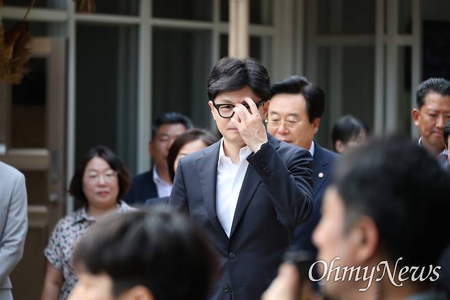 | ▲ 한동훈 국민의힘 대표가 3일 오후 박정희 전 대통령 생가를 찾아 비공개로 추모한 후 돌아나오고 있다. |
