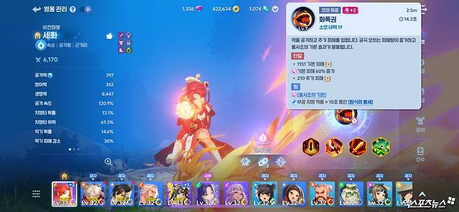 혹자는 이번 신작 '호연'이 '리니지'를 필두로 한 '매운 BM(비즈니스 모델)'을 채택했다고 지적하고 있지만 성장 진척도를 따라가다 보면 여실히 다른 부분을 찾아볼 수 있다. '호연'의 가장 큰 특징은 '성장 볼륨'이다. 실시간 전투 기준 하나의 메인 캐릭터(리더)와 이를 보조하기 위한 4개의 캐릭터를 성장시키기 위해서는 '레벨업' '캐릭터 업적(별자리)' '아이템' '초월 등급' '무공 강화' '신수' 등 다양한 요소를 충족시켜야 한다.