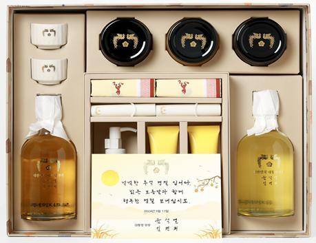 윤석열 대통령의 2024년 추석 선물 세트가 4일 공개됐다. 올해 추석 선물은 전통주 산업을 활성화하고 지역 특산물의 소비를 촉진하기 위해 도라지 약주(경남 진주), 유자 약주(경남 거제), 사과 고추장(충북 보은), 배 잼(울산 울주), 양파잼(전남 무안)으로 구성됐다. 특히 이번 선물은 ‘K-뷰티’의 저력을 보여주기 위한 자연 소재를 활용한 화장품 세트가 새로 포함된 게 특징이다. 화장품 세트는 오얏 핸드워시, 매화 핸드크림(전남 담양), 청귤 핸드크림(제주 서귀포), 사과 립밤(경북 청송), 앵두 립밤(경기 가평), 손수건으로 구성됐다.
