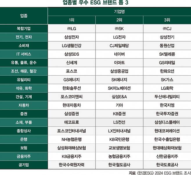[2024 ESG 브랜드] 소비자가 선택한 17개 업종 베스트 ESG 브랜드는
