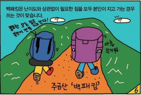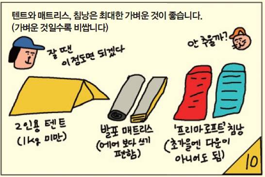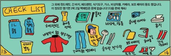 [만화등산백과 백패킹 초보] 등짐 지고 밖에서 첫 잠, 뭘 준비하지? 윤성중 2024. 9. 5. 07:35 음성으로 듣기 음성재생 설정 이동 통신망에서 음성 재생 시 데이터 요금이 발생할 수 있습니다. 글자 수 10,000자 초과 시 일부만 음성으로 제공합니다. 남성 여성 느림 보통 빠름 음성 재생하기 닫기 음성 재생 중지 번역 설정 번역beta Translated by kaka i 한국어 - English 영어 日本語 일본어 简体中文 중국어 Nederlands 네델란드어 Deutsch 독일어 Русский 러시아어 Malaysia 말레이시아어 বাঙ্গোল ভাষা 벵골어 tiếng Việt 베트남어 Español 스페인어 اللغة العربية 아랍어 Italiano 이탈리아어 bahasa Indonesia 인도네시아어 ภาษาไทย 태국어 Türkçe 튀르키에어 Português 포르투갈어 Français 프랑스어 हिन्दी 힌디어 닫기 번역중 Now in translation 글씨크기 조절하기 글자크기 설정 파란원을 좌우로 움직이시면 글자크기가 변경 됩니다. 가 매우 작은 폰트 작은 폰트 보통 폰트 큰 폰트 매우 큰 폰트 가 이 글자크기로 변경됩니다. (예시) 가장 빠른 뉴스가 있고 다양한 정보, 쌍방향 소통이 숨쉬는 다음뉴스를 만나보세요. 다음뉴스는 국내외 주요이슈와 실시간 속보, 문화생활 및 다양한 분야의 뉴스를 입체적으로 전달하고 있습니다. 닫기 인쇄하기 월간산 9월호 기사입니다. Copyright © 월간산. 무단전재 및 재배포 금지.