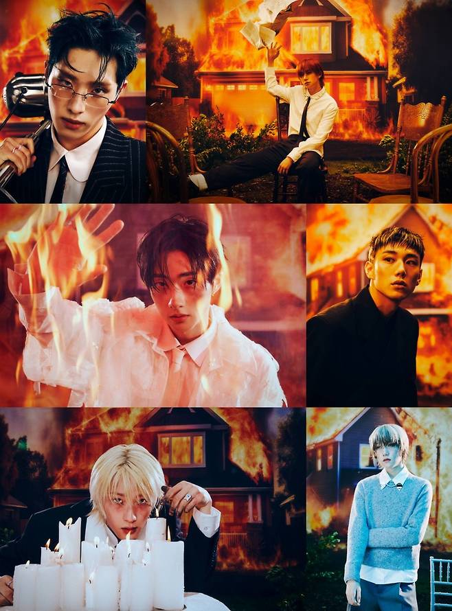 피원하모니는 불길이 치솟고 있는 집을 배경으로, 초연한 듯 무덤덤한 표정을 나타냈다. 깔끔하고 세련된 의상에 포인트를 주며 저마다의 개성을 드러냈다.