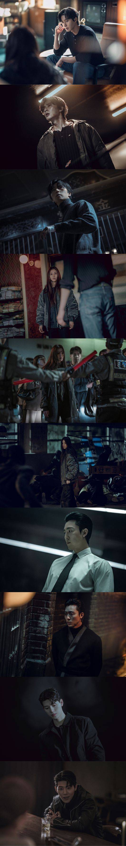 나진을 삼켜 늙지도 않은 채, 현재까지 살아온 윤채옥(한소희)의 스틸 역시 눈길을 사로잡는다. 채옥은 과거 토두꾼으로 활동했던 것과 비슷하게 실종자를 찾는 의뢰를 받으며 일명 은제비로 불리는 인물이다. 검은 후드를 쓴 채옥의 스틸은 오랜 시간 동안 나진으로 인해 솟구치는 본능과 욕망을 억누르며 살아온 그의 삶을 예상케 하며 그가 어떤 선택을 할지 궁금증을 더한다. 뿐만 아니라 수많은 적들 사이에 서있는 모습은 인간을 뛰어넘은 날렵한 움직임은 물론, 강렬하고 타격감 있는 ‘채옥’만의 액션을 완성한 한소희에 대한 기대를 높인다.