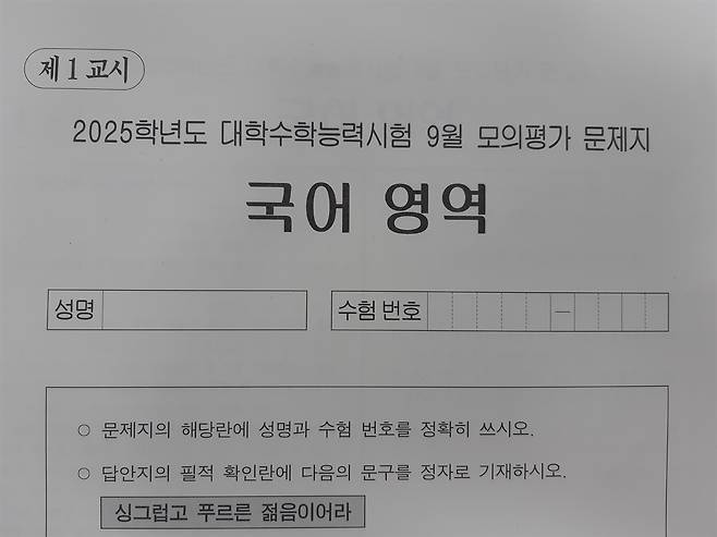 | ▲ 9월 모의평가 국어 문제지 2025학년도 수능 9월 모의평가 국어영역 문제지 표지 |