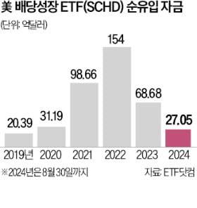 반면 국내투자자들은 꾸준히 SCHD를 사들이면서 전체 순매수에서 국내 투자자 비중이 두 자릿수대에 달한 것으로 나타났다. 올 들어 국내 투자자는 SCHD를 3억7524만달러어치 순매수했다. 전체 순유입 금액 중 14%에 달하는 규모다.