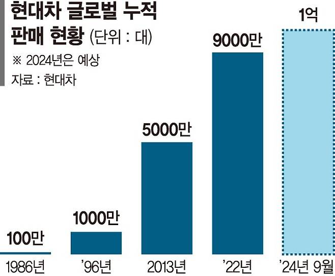 현대차, 누적 1억대 판매 대기록 쓴다