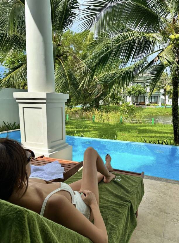 또 다른 사진에는 화이트 수영복을 입고 수영을 즐기는 모습을 담았다.