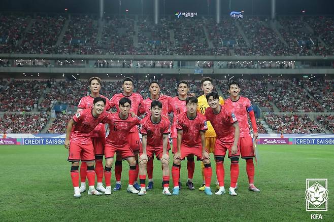 한국은 4-2-3-1 포메이션을 꺼냈다. 주민규가 최전방에 배치됐고, 손흥민-이재성-이강인이 2선에서 지원 사격했다. 정우영과 황인범이 중원을 맡았고, 설영우-김영권-김민재-황문기가 포백을 형성했다. 조현우가 골문을 지켰다. 팔레스타인은 4-4-2로 맞섰다.