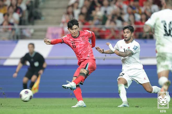 후반 시작과 동시에 홍명보 감독은 주민규를 빼고 오세훈을 투입하는 강수를 뒀다. 전반에 비해 템포가 올라온 모습이었다. 후반 5분 황인범의 왼발 중거리 슈팅이 빗맞았다. 6분 팔레스타인 웨셈 아부알리가 기습적인 슈팅으로 한국을 위협했다.