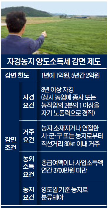 8년 자경 농지 양도세 감면 손질 ‘고개’