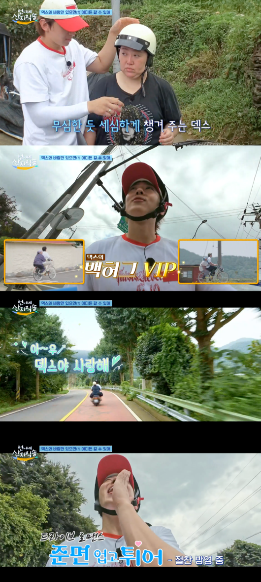 '언니네 산지직송' 덱스가 '고해' 열창과 오토바이 드라이브로 플러팅 장인다운 면모를 뽐냈다.