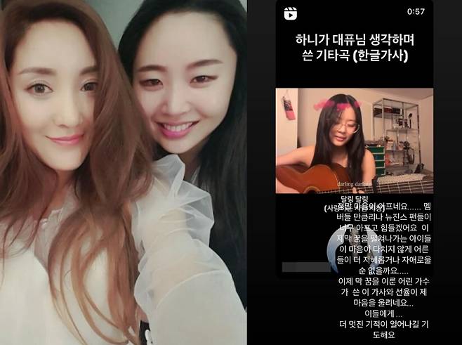 최근 하니는 뉴진스 공식 SNS 계정에 기타를 치며 자작곡을 부르는 영상을 공개, "올해 4월인가? 5월부터 이 노래를 만들기 시작했다. 근데 버니즈(팬덤명), 멤버들, 대퓨(표)님, 나도 그 당시에 되게 힘들어하고 있었고 모두를 위로해 주고 싶고 마음 상처를 다 없애주고 싶은 마음으로 이 곡이 어느 순간부터 내 머릿속에 맴돌다가 나왔다"고 설명했다.