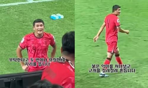 이후 김민재는 뒤를 돌아 그라운드를 가로질렀다. 김민재는 이때 팬들 쪽을 한 번 더 쳐다보며 고개를 절레절레 흔들었다. 또 김민재는 동료들과 상암구장을 한 바퀴 돌며 팬들에게 인사하면서도, 붉은악마 응원단이 있는 곳 앞에서는 허리에 손을 올린 채 그저 관중석을 바라보며 인사를 전하지 않았다.