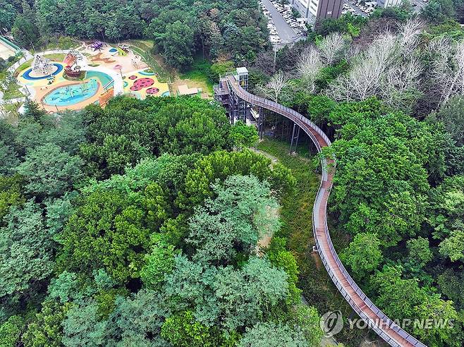 (광주=연합뉴스) 김혜인 기자 = 6일 광주 북구 운암동 중외근린공원 일원에 광주시립미술관과 예술의전당을 잇는 하늘다리와 생태예술놀이터가 조성됐다. 광주시립미술관은 중외공원 일대에 예술과 자연을 담은 '아시아 예술정원'을 오는 7일 개장한다. 2024.9.6