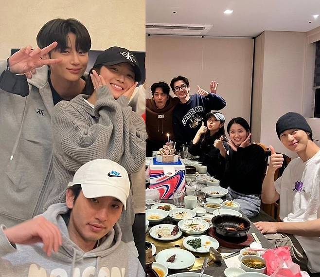 공개된 사진 속에는 '선업튀'에 출연한 변우석, 김혜윤, 송건희, 허형규, 송지호, 서혜원 등 배우와 스태프들이 함께 모여있어 눈길을 끈다. 과거 다양한 날 모여 식사나 축하 파티를 열었을 때의 현장으로 보인다.