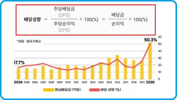 ‘배당’이란 기업이 일정기간 동안 영업활동을 해서 발생한 이익 중 일부를 주주들에게 나눠주는 분배금을 말한다. 따라서 ‘배당금’이란 주주에 대한 회사의 이익분배금이라 해석할 수 있다. 또한 ‘배당성향’이란 당기순이익 가운데 현금으로 지급되는 배당금 총액의 비율을 말한다. 만약 당기순이익이 1백억인 회사가 배당금으로 15억을 주주들에게 지급하였다면 배당성향은 15%인 셈이다.