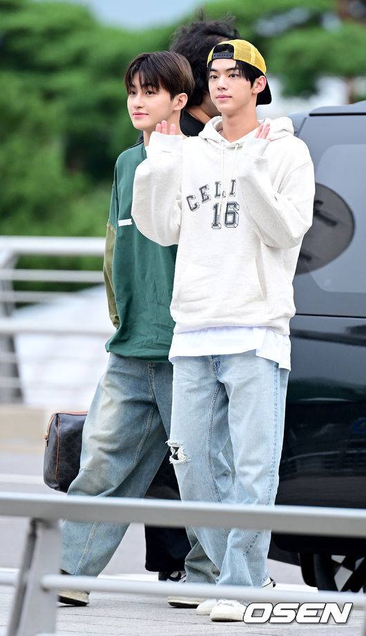 투어스 지훈과 도훈이 출국장으로 향하며 팬들과 취재진을 향해 인사하고 있다. 2024.09.06 / dreamer@osen.co.kr