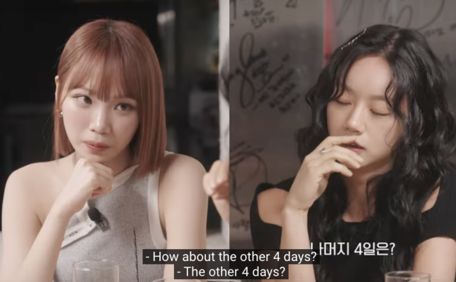 최근 근황에 대해 계속 컴백 준비했다는 채원. 혜리는 “같은 숍이라서 근황을 알았다 다 르세라핌 일본 출장갔다고 하더라”며“내가 늘 ‘르세라핌은 안 쉬어?’라고 묻는다”고 했다. 이에 채원은 “바쁠 때 또 해놔야한다 물 들어올때 노 저어야한다”며“혜리언니도 엄청 바쁘면서 안 바쁜 적 한다 자꾸 나 때문에 못 본다고 내탓한다”고 했다. 이에 혜리는 “나는 해외를 왔다갔다 하진 않는다”며 겸손하게 말했다.