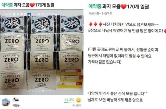 이런 황당...탕비실 과자 묶음 170개 중고거래한 직원