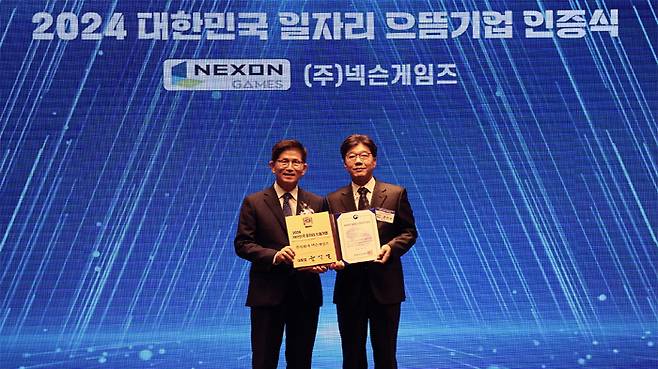 넥슨게임즈, 고용부 주관하는 '대한민국 일자리 으뜸기업' 2년 연속 수상
