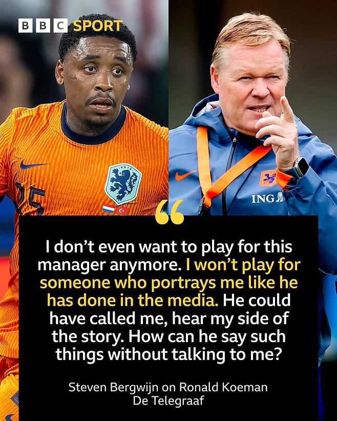 스티븐 베르흐베인(26·알 이티하드)이 로날드 쿠만(61) 네덜란드 국가대표팀 감독과 '손절'을 선언했다.