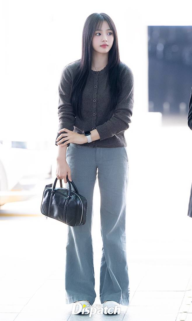 민지는 그레이 니트와 면팬츠로 가을 분위기를 냈다. 여신 미모가 돋보였다.