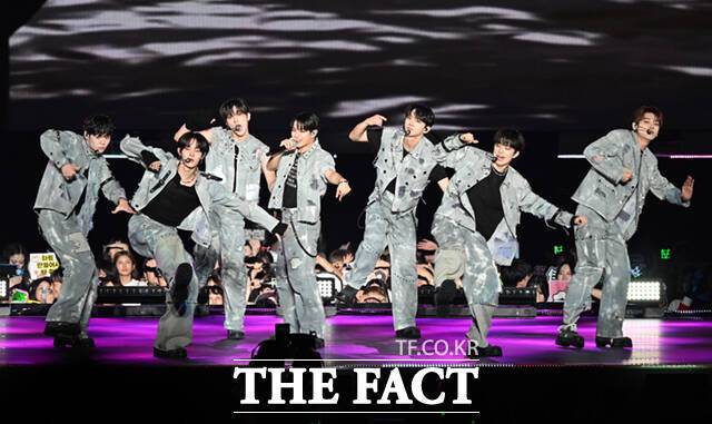 <더팩트> 가 주최하고 팬앤스타와 필링바이브(FEELINGVIVE)가 주관하는 '2024 더팩트 뮤직 어워즈(2024 THE FACT MUSIC AWARDS, TMA)'가 7일 오후 일본 오사카 '교세라 돔 오사카'에서 열린 가운데 그룹 이븐(EVNNE)이 무대를 펼치고 있다. 더팩트>