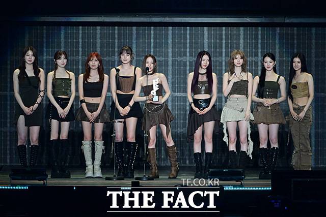 <더팩트> 가 주최하고 팬앤스타와 필링바이브(FEELINGVIVE)가 주관하는 '2024 더팩트 뮤직 어워즈(2024 THE FACT MUSIC AWARDS, TMA)'가 7일 오후 일본 오사카 '교세라 돔 오사카'에서 열린 가운데 '올해의 아티스트' 부문을 수상한 그룹 니쥬(NiziU)가 소감을 밝히고 있다. 더팩트>