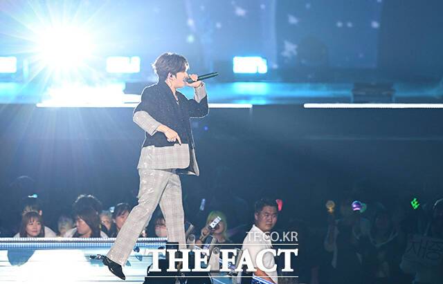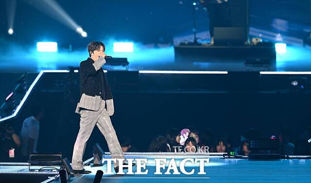 <더팩트> 가 주최하고 팬앤스타와 필링바이브(FEELINGVIVE)가 주관하는 '2024 더팩트 뮤직 어워즈(2024 THE FACT MUSIC AWARDS, TMA)'가 7일 오후 일본 오사카 '교세라 돔 오사카'에서 열린 가운데 가수 김재중이 화려한 무대를 펼치고 있다. 더팩트>