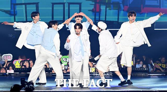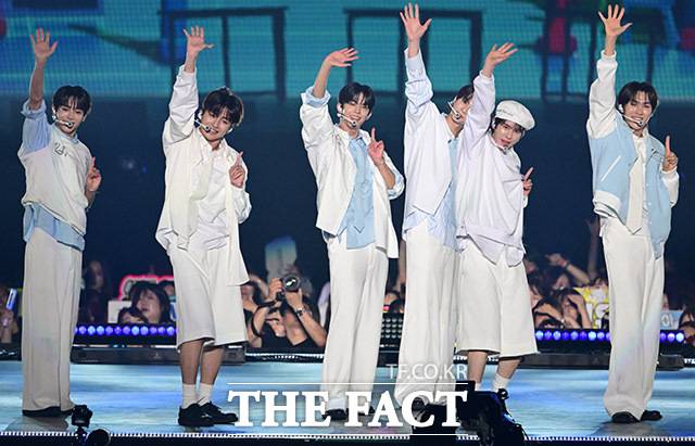 <더팩트> 가 주최하고 팬앤스타와 필링바이브(FEELINGVIVE)가 주관하는 '2024 더팩트 뮤직 어워즈(2024 THE FACT MUSIC AWARDS, TMA)'가 7일 오후 일본 오사카 '교세라 돔 오사카'에서 열린 가운데 투어스(TWS)가 무대를 펼치고 있다. 더팩트>