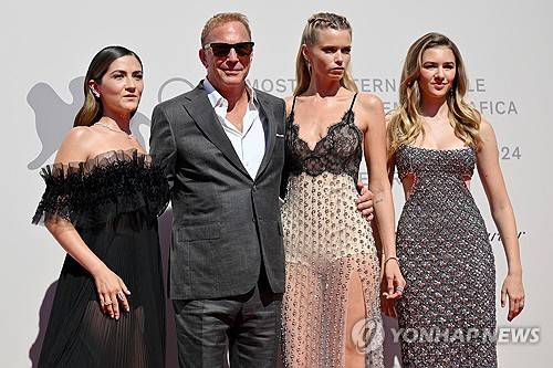 epa11591249 US (L-R) actors Isabelle Fuhrman, director Kevin Costner, Abbey Lee and Georgia MacPhail arrive for the premiere of 'Horizon: An American Saga - Chapter Two' during the 81st annual Venice International Film Festival, in Venice, Italy, 07 September 2024. The movie is presented out of competition at the festival running from 28 August to 07 September 2024. EPA/ETTORE FERRARI