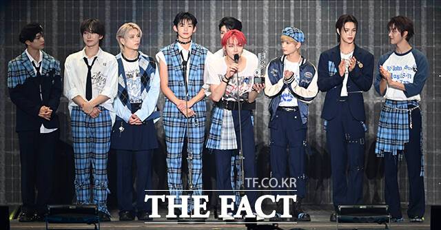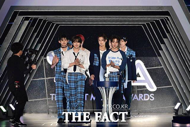 <더팩트> 가 주최하고 팬앤스타와 필링바이브(FEELINGVIVE)가 주관하는 '2024 더팩트 뮤직 어워즈(2024 THE FACT MUSIC AWARDS, TMA)'가 8일 오후 일본 오사카 '교세라 돔 오사카'에서 열린 가운데 '글로벌 제너레이션'을 수상한 그룹 앤팀이 소감을 말하고 있다. 더팩트>