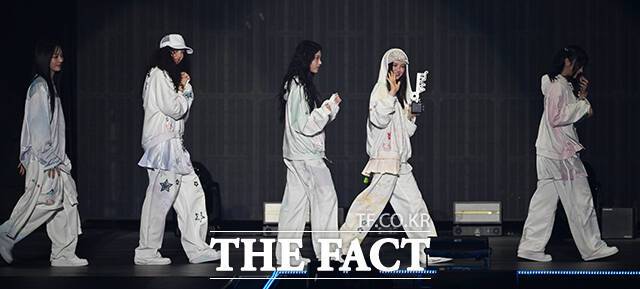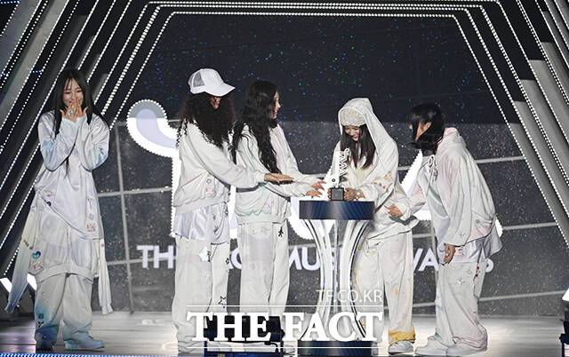<더팩트> 가 주최하고 팬앤스타와 필링바이브(FEELINGVIVE)가 주관하는 '2024 더팩트 뮤직 어워즈(2024 THE FACT MUSIC AWARDS, TMA)'가 8일 오후 일본 오사카 '교세라 돔 오사카'에서 열린 가운데 '월드 베스트 퍼포머' 상을 받은 그룹 뉴진스(NewJeans)가 수상 소감을 밝히고 있다. 더팩트>