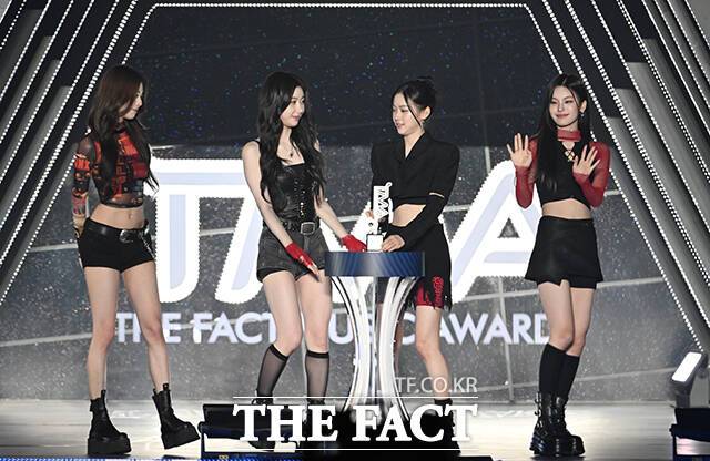 <더팩트> 가 주최하고 팬앤스타와 필링바이브(FEELINGVIVE)가 주관하는 '2024 더팩트 뮤직 어워즈(2024 THE FACT MUSIC AWARDS, TMA)'가 8일 오후 일본 오사카 '교세라 돔 오사카'에서 열린 가운데 '월드 베스트 퍼포머' 상을 받은 그룹 있지(ITZY)가 수상 소감을 밝히고 있다. 더팩트>