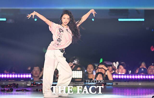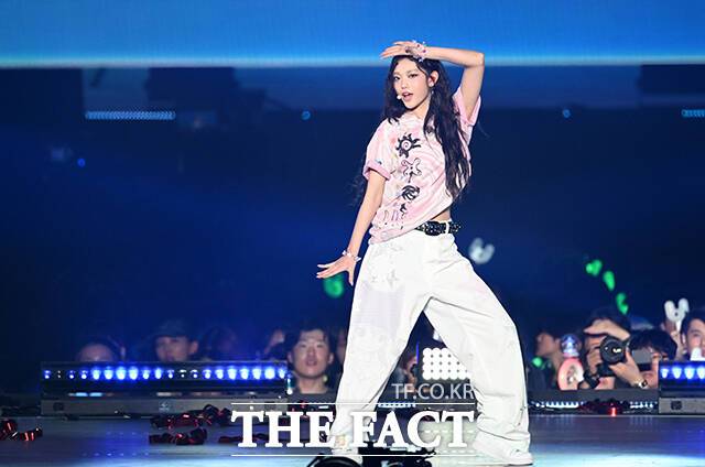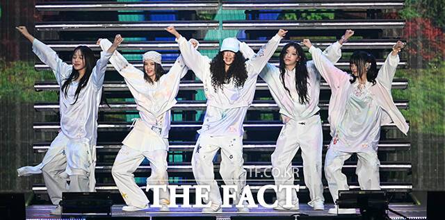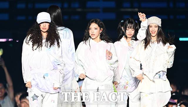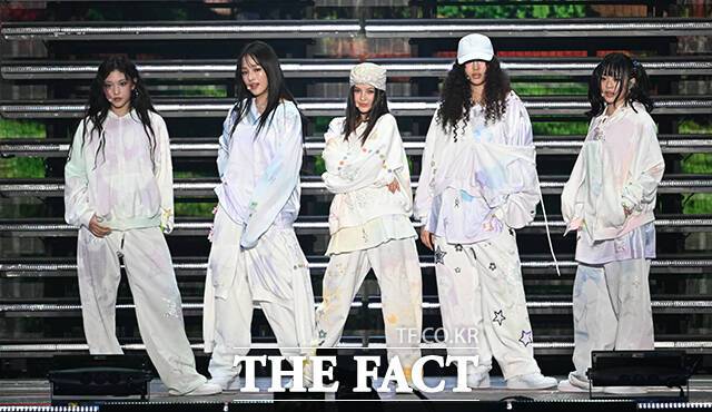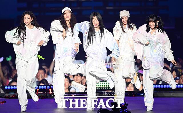 <더팩트> 가 주최하고 팬앤스타와 필링바이브(FEELINGVIVE)가 주관하는 '2024 더팩트 뮤직 어워즈(2024 THE FACT MUSIC AWARDS, TMA)'가 8일 오후 일본 오사카 '교세라 돔 오사카'에서 열린 가운데 그룹 뉴진스(NewJeans)가 무대를 펼치고 있다. 더팩트>