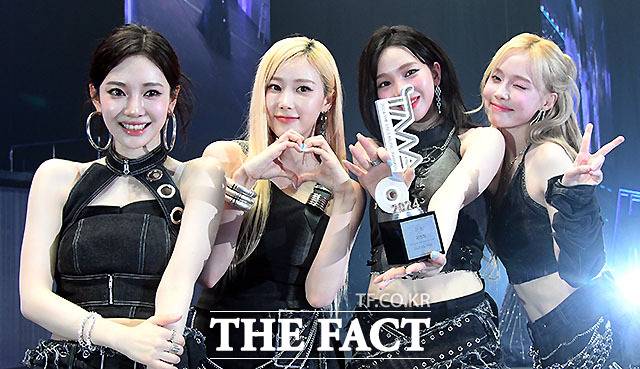<더팩트> 가 주최하고 팬앤스타와 필링바이브(FEELINGVIVE)가 주관하는 '2024 더팩트 뮤직 어워즈(2024 THE FACT MUSIC AWARDS, TMA)'가 8일 오후 일본 오사카 '교세라 돔 오사카'에서 열린 가운데 대상을 수상한 그룹 에스파가 트로피를 들고 포즈를 취하고 있다. 더팩트>