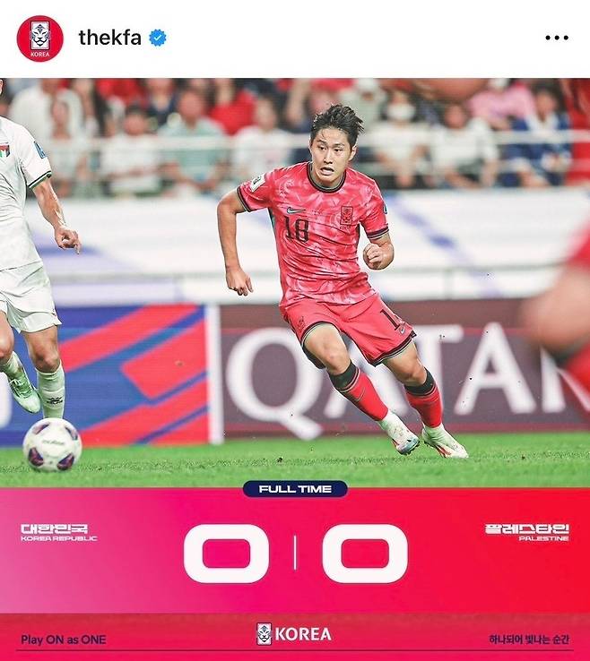 결과는 0:0 무승부. 이강인은 “형들이 기회를 잘 만들어줬는데 살리지 못해 미안하다. 더 노력하는 선수가 되겠다”며 고개를 숙였다. 3차 예선 2차전은 오만 원정이다.