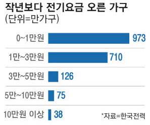 전기요금이 증가한 가구만 살펴보면 증가액은 평균 1만7000원 수준이다.