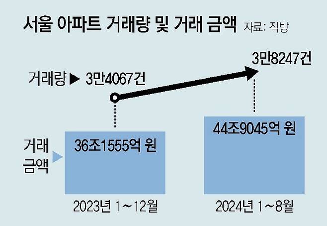 서울 아파트 1~8월 거래액 45조… 작년 총액 넘어서