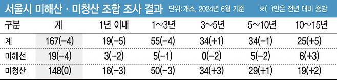 서울시는 “올해 상반기엔 조사를 통해 총 해산 8곳과 청산 8곳을 이뤘다. 다만 시간이 경과하며 10년 이상 조합이 추가됐으며 해산된 8곳이 청산된 곳으로 넘어가면서 수치가 늘었다”며 “장기 미청산 조합들의 경우 실질적인 청산이 됐음에도 연세가 많은 분들이 등기 절차를 밟지 않는 등의 사유가 포함돼 있는 부분도 있다. 앞으로 서울시는 신속한 조합 해산·청산을 위한 노력을 보다 강화해 나갈 것”이라고 입장을 전했다.