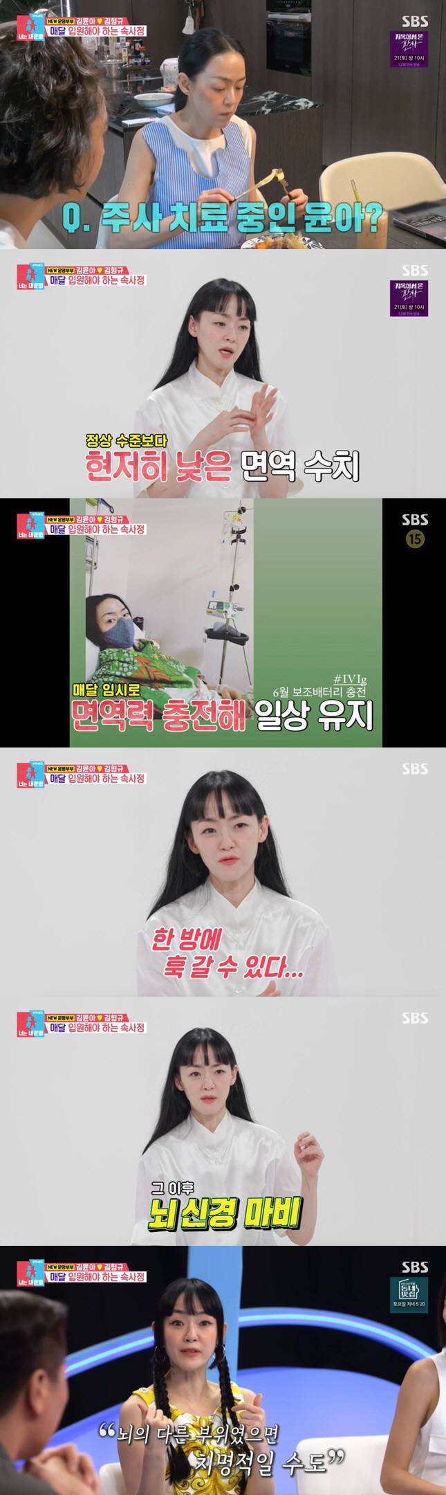 이날 김윤아는 선천적 면역질환을 고백해 시선을 모았다.