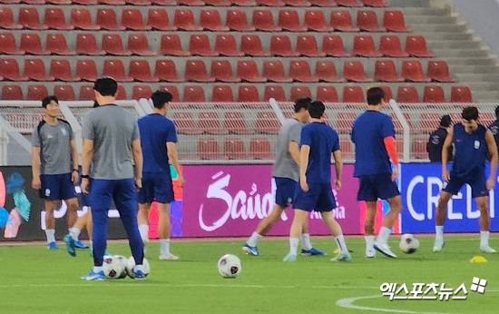 이날 공개 훈련에는 오만 취재진들까지 몰려들었다. 15분이라는 짧은 시간 동안 진행된 공개 훈련에서 대표팀은 오만 취재진에게 어떠한 힌트라도 주지 않겠다는 듯 론도(패스 돌리기) 훈련만 진행했다. 전술적인 훈련은 하지 않았다.