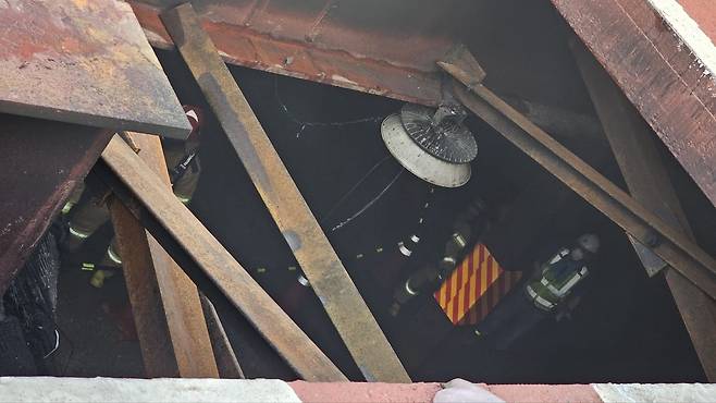 (시흥=뉴스1) 김기현 기자 = 10일 오전 5시께 경기 시흥시 목감동 신안산선 목감역 지하 공사 현장에서 화재가 발생해 소방 당국이 진화 작업을 벌이고 있다. (경기도소방재난본부 제공) 2024.9.10/뉴스1