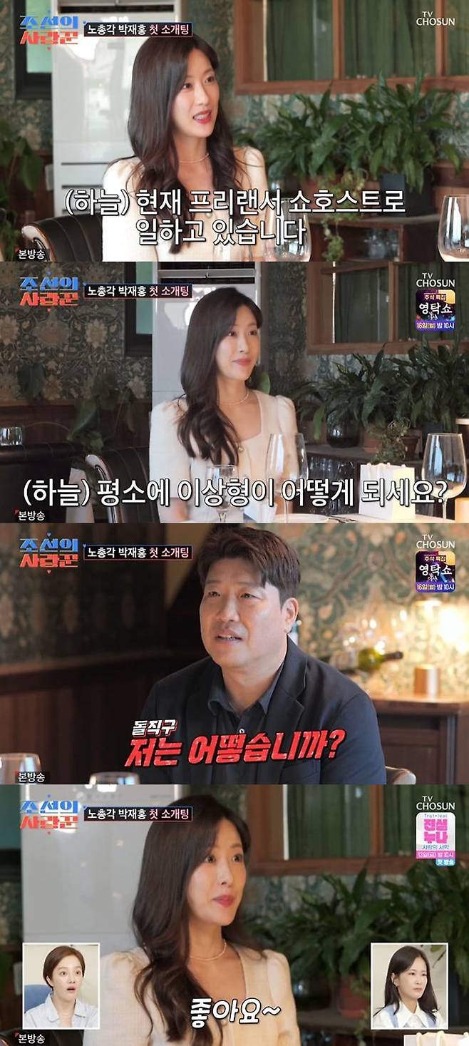 이날 박재홍의 소개팅 상대는 프리랜서 쇼호스트로 활동 중인 30대 여성 이하늘이었다.