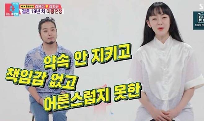 반면 김윤아는 "김형규가 2살 동생인데 처음부터 반말을 하더라. 내 나이를 분명 알았는데도 누나라고 안 했다"고 폭로했고 이에 김형규는 "동생으로 인식되는 게 싫어서 누나라는 호칭을 피했다. 그냥 언니라고 부르겠다고 했다"고 덧붙여 모두의 웃음을 자아냈다. 또 김윤아는 남편을 '둘째 아들'로 표현하면서 "약속 안 지키고, 책임감 없고, 어른스러운 커뮤니케이션을 못 한다"고 폭로했다.