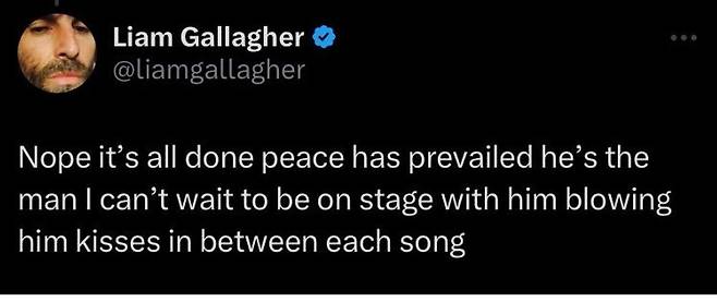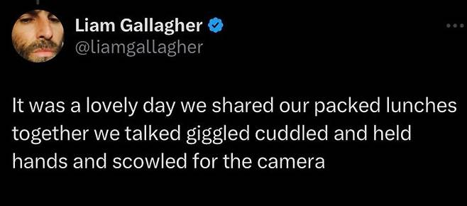 지난 7일(현지 시간)부터 리암 갤러거는 개인 계정으로 팬과 소통했다. 그는 형 노엘 갤러거와 오랜만에 만나 맛있는 도시락도 먹고 얘기를 나눴으며 손도 잡았다고 전했다.
