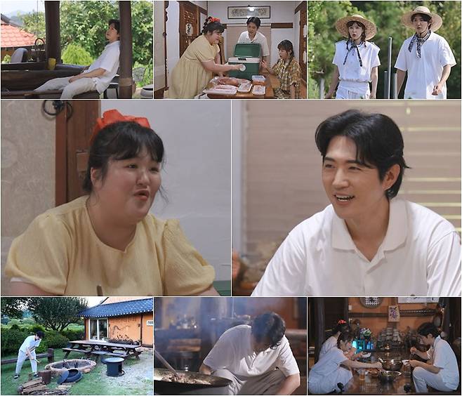 이날 평화로운 시골집 마당에서 혼자 컵라면을 먹던 데니안은 "오빠~"라며 나타난 신지와 이국주의 목소리에 놀란다. g.o.d 활동 시절부터 인연을 쌓아온 26년 지기 신지, 예능 활동을 통해 만난 9년 지기 이국주가 '촌캉스'에 합류한 것. 특히 이국주는 양 손 무겁게 아이스박스와 캐리어를 들고 오는데, 이를 본 데니안은 아이스박스를 받아 대신 들어주지만 곧장 "어우야…"라는 앓는 소리와 함께 팔이 부들부들 떨려 안쓰러운 웃음을 자아낸다.