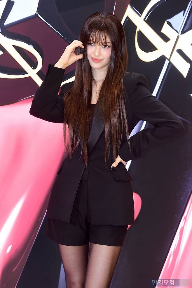 그룹 뉴진스 다니엘이 10일 오후 서울 소공동 롯데백화점 본점에서 열린 입생로랑 뷰티 '잉크 바이닐 틴트' 론칭 팝업이벤트에 참석해 포즈를 취하고 있다.