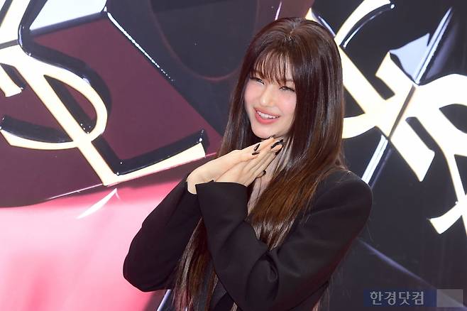그룹 뉴진스 다니엘이 10일 오후 서울 소공동 롯데백화점 본점에서 열린 입생로랑 뷰티 '잉크 바이닐 틴트' 론칭 팝업이벤트에 참석해 포즈를 취하고 있다.