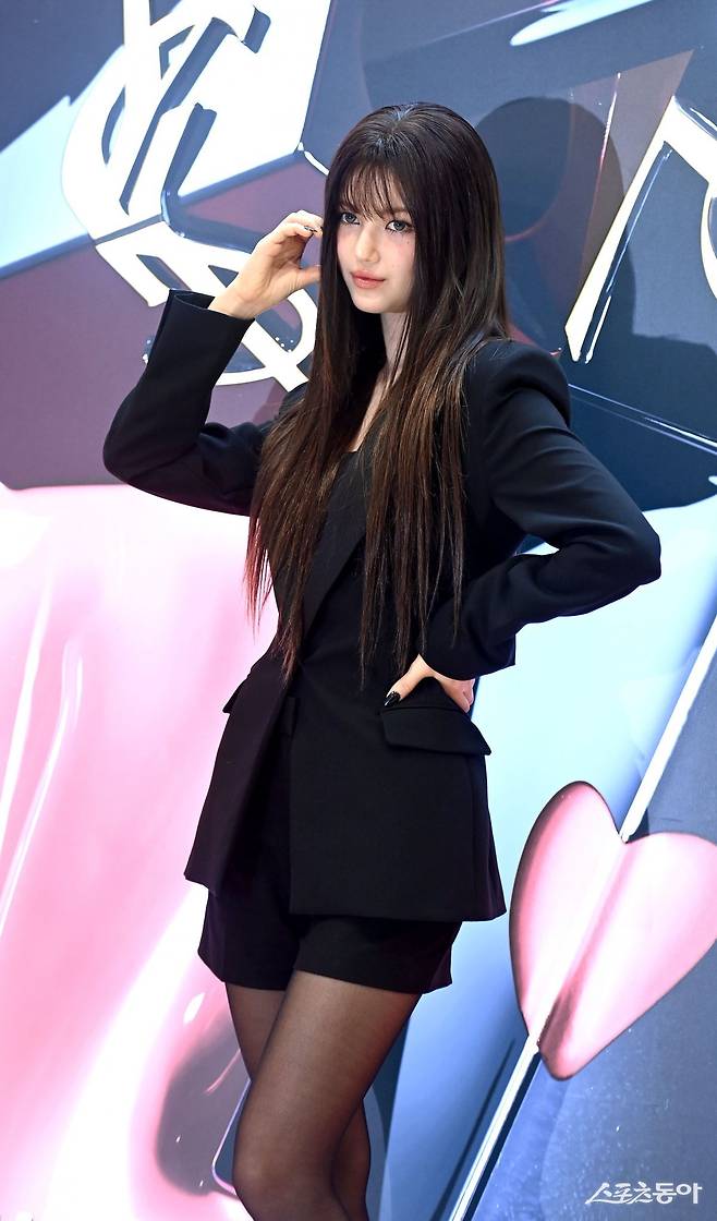뉴진스 다니엘이 10일 서울 중구 롯데백화점 본점에서 열린 입생로랑 뷰티 잉크 바이닐 틴트 팝업 이벤트 포토콜에서 포토타임을 갖고 있다. 김종원 기자 won@donga.com